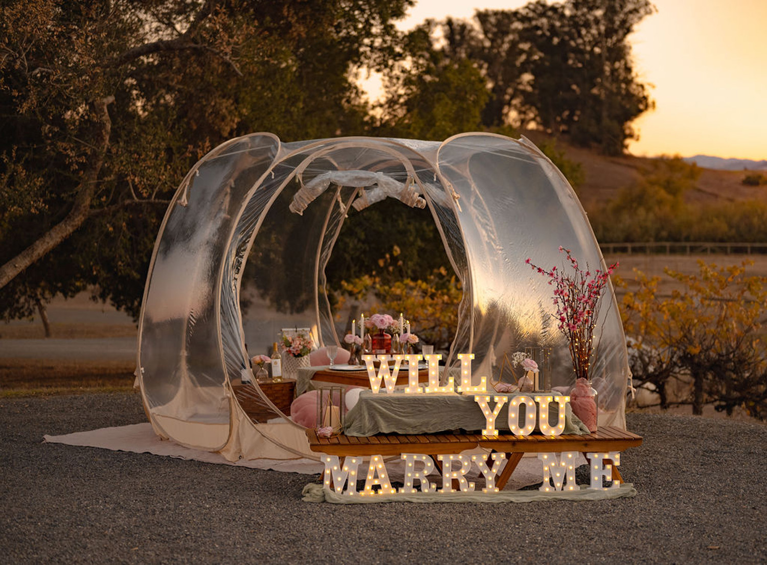 Proposal with Igloo Tent and Small Marquee Letters